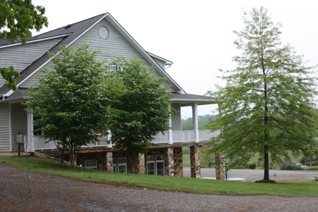 You can see the studio windows beneath the porch in this photo. It is a beautiful, open room—it also happens to be stocked with spinning wheels, combs, cards, dyepots, and anything else you might need!