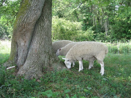 Now that we have had some rain, heat in the upper nineties has promised a very humid week. This morning, I moved the sheep to a new pasture with a large, shady tree near the woods. As the sun sets in the afternoon, deep shade from the woods moves towards the pasture to offer our wooly friends some respite.