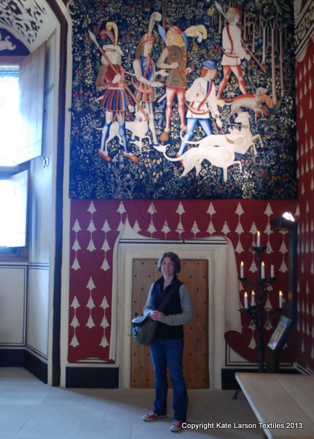 While staying in Edinburgh, we took a day to make the very easy trip to Stirling Castle. Again, this was a journey I have made a number of times before. When I was at Uni in 2000, an Historic Scotland guide mentioned to me that some of the castle apartments were due to be renovated to look as they would have during the time of James V. When I visited in 2004, the apartments were not yet open to the public, but the first of an epic series of tapestries had been completed and was on view. A tapestry studio had recently been constructed within the castle walls where weavers from the College of West Dean were working away on a new tapestry. This was about the time I was beginning to find my place in the textile world and watching the weaver sitting at the tapestry, the way that she interacted with the fabric as her fingers danced through the warp threads, made a lasting impression. She, as weaver and creator, had an intense relationship with the tapestry. And yet the tapestry would go on to have a life of its own, lasting far beyond that of its human creators.