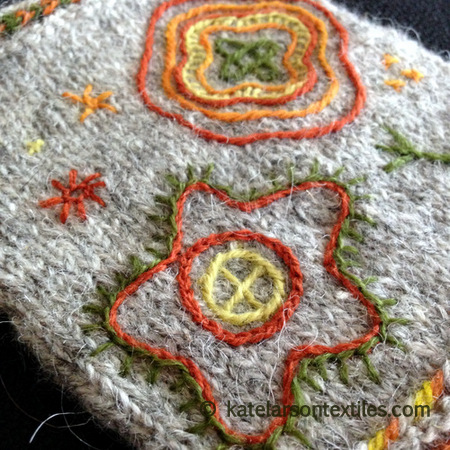 I had such a wonderful time teaching with Nancy Bush in March. It was a full weekend of spinning, knitting, and embroidering Estonian-inspired handcoverings. Nancy brought a breath-taking pile of embroidered textiles which she has collected during her many travels in Estonia.